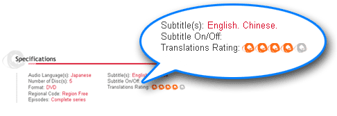 of the import DVDs and ratings are given to grade the quality of the translations. This is shown in the prodcut